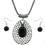 Here are some of the great features of Tear Drop Shaped Pendant Necklace with Oval Onyx and 12mm Onyx Dangle Earrings - 58x46mm Pendant with 18'' Popcorn Chain with 2'' Extender