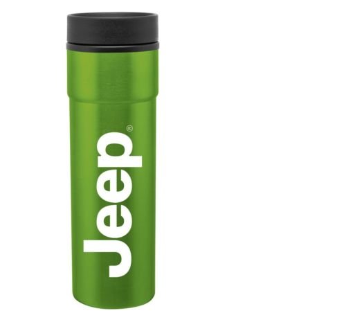 NEW JEEP COFFEE, NEW IN PACKAGE GENUINE OEM JEEP TRAVEL COFFEE MUG Stainless Steel Travel Tumbler Item# 1038E Grab your mug and go. This fun, eco-friendly travel tumbler is perfect anytime, anywhere. Available in apple. Specifications: · Stainless steel tumbler with plastic liner · Foam insulated · Jeep logo printed vertically on side of tumbler · 16-oz. capacity