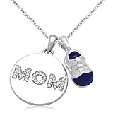 Amazon.com Collection 45799BE/STGSIL/J1/SIL030RLO/E-E13/STD, Celebrate the mom-to-be with the Sterling Silver Diamond Shoe with Blue Enamel and Circle Mom Pendant. Resting from an 18-inch rolo chain is an adorable pendant design of a blue baby shoe and a bright 925 sterling silver circular pendant. The word "MOM" stretches across the circular pendant in bold diamond-embellished lettering. A great way to welcome a baby boy. ...