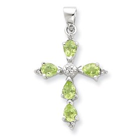 JewelryWeb , Sterling Silver Rhodium Pear Peridot Cross Pendant - .02 Carat Diamond Weight .82 Carat Gemstone Weight in Sterling Silver - Product Attributes: - Polished - Genuine - JewelryWeb Style: QTP160067NC - FREE gift-ready jewelry box - This Item Does Not Ship With a Chain