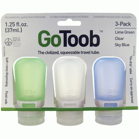 Humangear , This Go toobs are made of a soft yet rugged silicone, gotoob is civilized, squeezable liquid transport tube for travelling, outdoors, and much more. Simply the best travel bottles available. Colors included: clear, green, blue